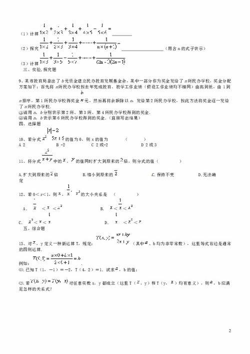 首先,让我们从分式的定义开始。分式,简单来说,就是由分子和分母组成的表达式,其中分子和分母都可以是整数、小数或者代数式。在八年级下册数学中,我们主要学习的是简单分式的运算和性质。